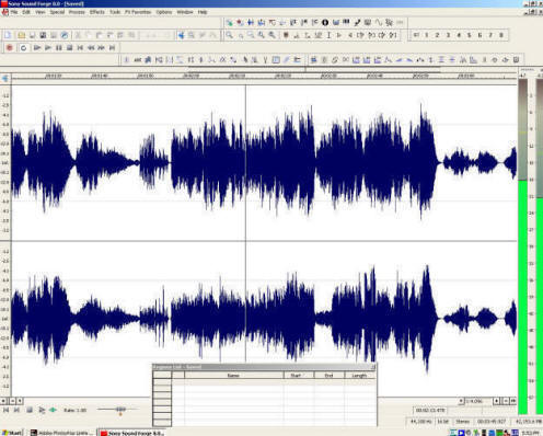 These are special units designed for mastering.Many cassette recorders offered either Dolby B or C noise reduction or both. My Tascam units had an optional DBX noise reduction system as did a Teac consumer cassette deck that I owned. Essentially if you are going to transfer cassette tapes you need a reliable machine (preferably with solenoid operation) with noise reduction to match what was used on the cassette being transferred. MAKING ANALOG DIGITAL BACK TO TOP OF PAGE At some point, you have to convert the analog sound to digital and at a later point back to analog since our ears respond only to analog sound. This requires an analog to digital converter and a digital to analog converter. This is commonly referred to as an AD/DA converter. There are several ways to do this. If you are going to do your digital audio restoration using a computer, your computer may have a built-in sound card. If so, the AD/DA converter chips are a part of that sound card and you simply plug the output of your phono preamp, tape recorder or cassette deck into the input jacks on your computer's sound card. While the sound cards built in to computer motherboards have improved dramatically, it is often preferable to use an outboard sound card that you plug in to one of the slots on your computer motherboard or even a stand-a-lone sound card that you connect to a USB or Fire Wire input on your computer. These often provide better quality AD/DA chips and support a wider range of sampling and bit options. Digital audio recording is analogous to shooting a movie on film. A movie is a series of still photos taken over a period of time that are then shown at a rate of speed that tricks our brains into believing that it is seeing movement (24 frames per second). Similarly, digital audio recording samples the sound at a specific rate and tricks our ears into thinking that it is hearing a continuous sound. The rate that was agreed upon for audio CD's is 44,100 samples per second. But there are other sample rates -- some smaller and some larger. 48,000, 96,000 and 192,000 are common. The sample rate will determine the highest audio frequency that you can record. Essentially this is determined by dividing the sample rate by 2. So with a 44,100 sampling rate, the highest audio frequency will be 20,000 Hz. In addition, digital audio recording uses "bits" (zeroes and ones) to store data. The more bits, the more data that your digital audio tools will have to work with and the more likely that when the noise has been removed the audio will still sound like the original. CD audio uses 16 bits. An outboard AD/DA converter will be more likely to support additional bit rate options including 20 and 24 bit operation. If you are going to be using hardware based restoration equipment, the choice of an AD/DA converter may be more complicated. For example, the CEDAR Duo Declickle unit has no analog inputs or outputs. In order to interface an analog output (phono, tape or cassette) to the CEDAR unit, you will need a separate AD/DA converter. These are relatively pricey with entry level units starting at about $1,000. However, if you happen to have a DAT recorder, you can use the machine's built-in AD/DA converters for your interface. DIGITAL AUDIO EDITORS/HOSTS BACK TO TOP OF PAGE Once you have your analog sound in digital form, you have to record it in a digital format so that you can hear the sound and work on it. The format that is most commonly used to record digital audio is the WAV format. Other formats include mpg-3 and WMA. Both of those are "lossy" formats which means that they are compressed and some of the digital information is thrown away in order to compress the files. The most common means of making a digital audio recording is to use digital audio editing software. These are available for both MAC and Windows based computers. My